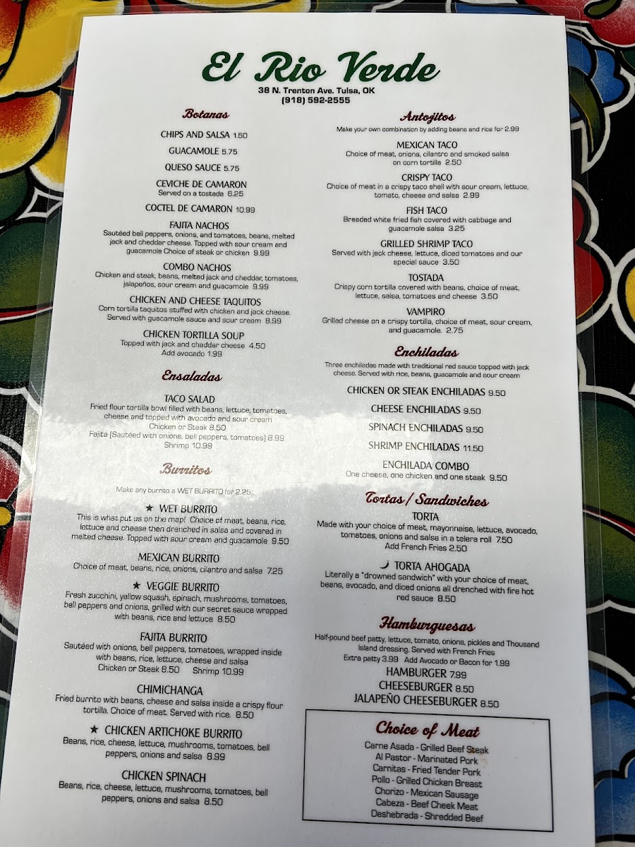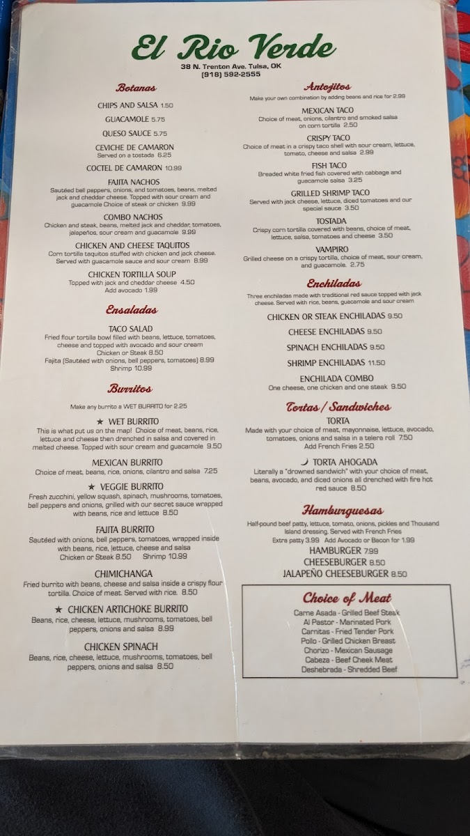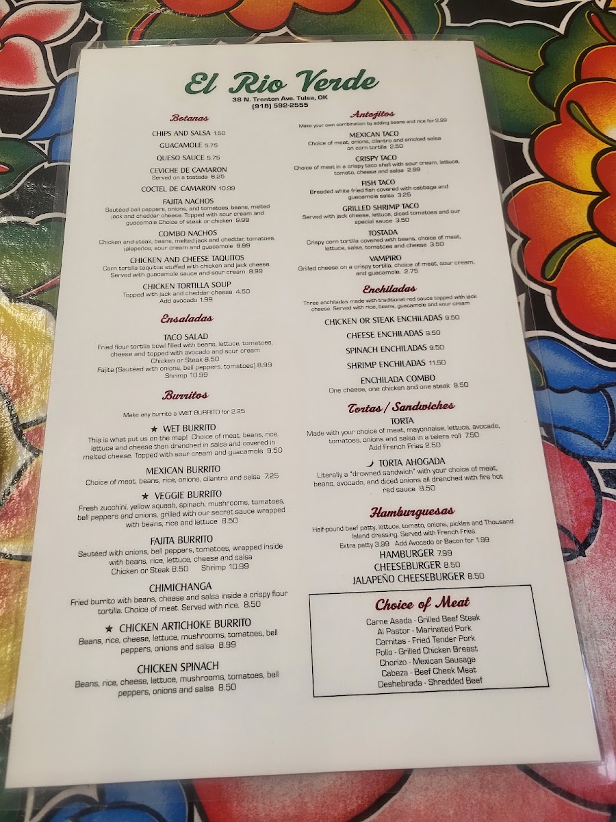 El Rio Verde Restaurant offers a straightforward and inviting menu that focuses on authentic Mexican flavors served in a relaxed, casual setting. The menu balances comforting favorites with a selection of fresh seafood and hearty dishes, making it easy to find something satisfying whether you're stopping by for a quick lunch or a laid-back dinner.